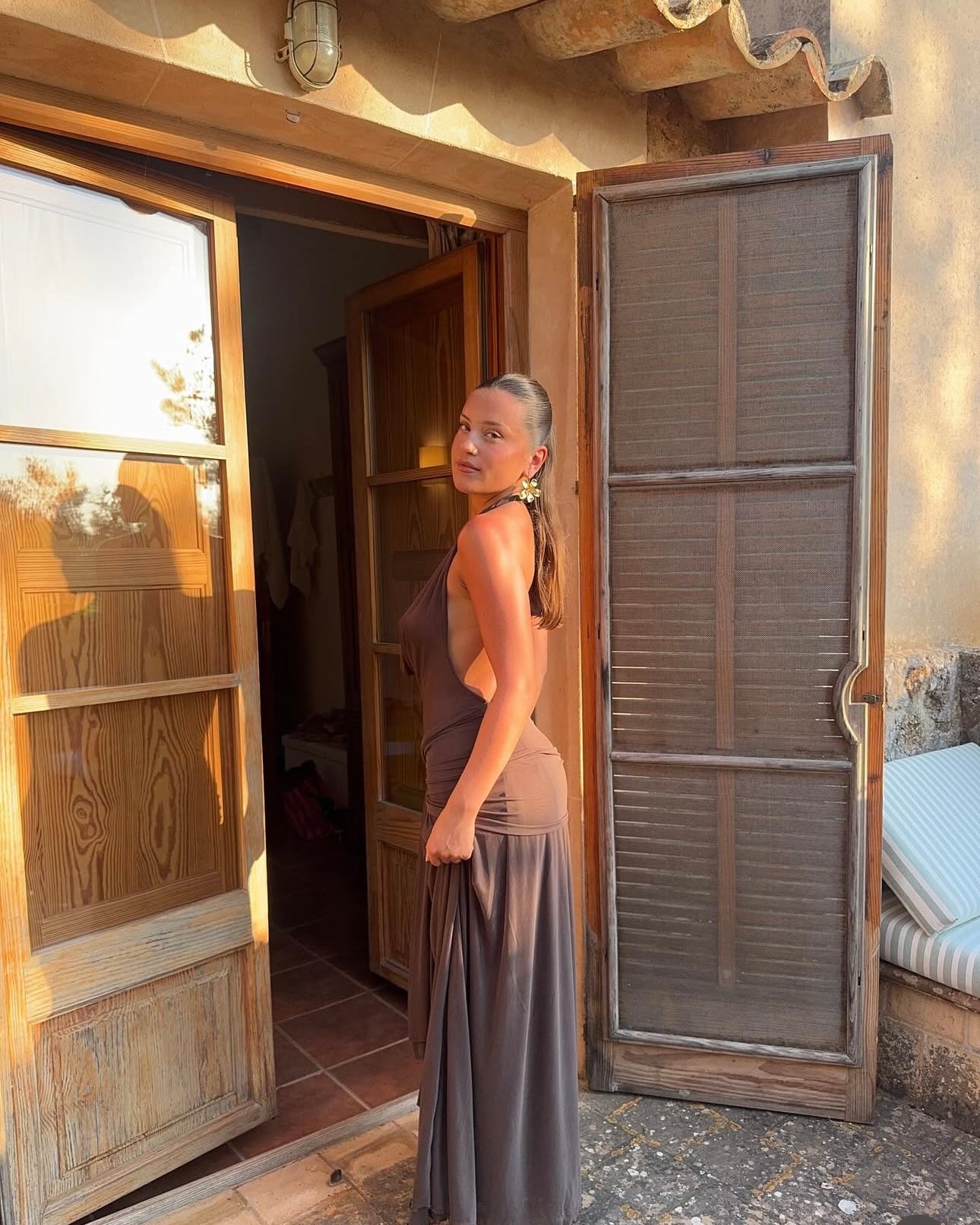 Crafted in a rich chocolate brown tone, the Yosei showcases a flattering gathered waist with an elegant tie detail that enhances the waistline while allowing the skirt to fall fluidly over the body. The low open back and lightweight, stretchy fabric make this piece as comfortable as it is striking.